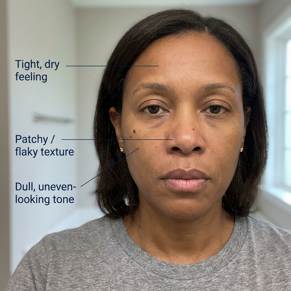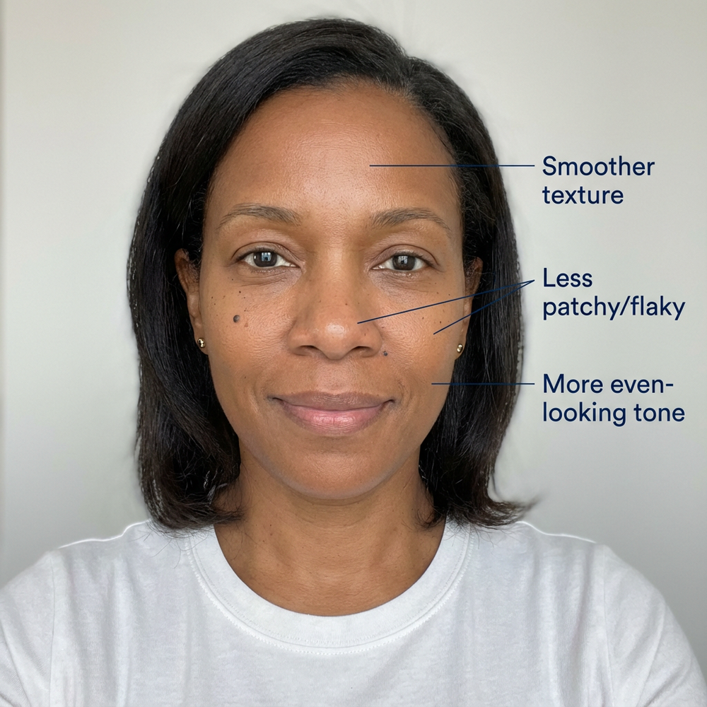 On melanin-rich skin, even a little dryness can make tone look uneven — and spots look louder than they really are.
